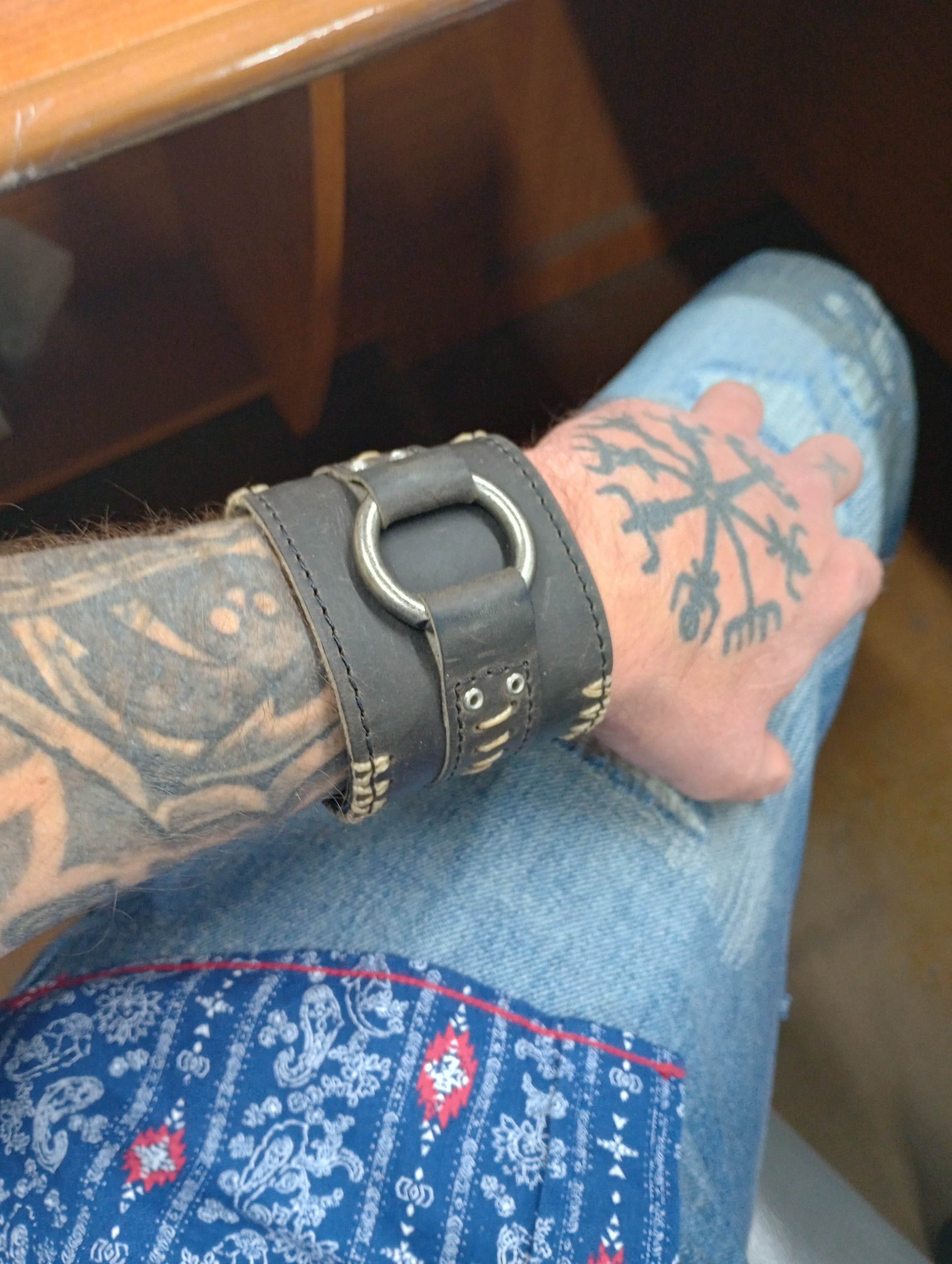 And, our leather burnishes and beautifies with use. All of our leather cuffs have their natural marks, scrapes and scars, which means they have loads of raw, rugged personality.